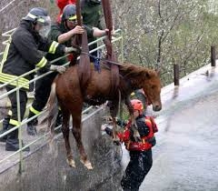 E' successo a Solagna, in provincia di Vicenza, dove un cavallo dopo essere fuggito da un recinto, è scivolato in un canale vicino al fiume Brenta. Sono stati vani i tentativi di salvarlo fatti dal padrone aiutato da alcuni amici e residenti della zona. Sono cosi intervenuti i vigili del fuoco aiutati dal gruppo di sommozzatori di Venezia, ma anche questi ultimi non sono riusciti a portare in salvo l'animale. E' stato necessario l'intervento di un elicottero dei vigili del fuoco dopo che il quadrupede è stato imbragato dai sommozzatori.